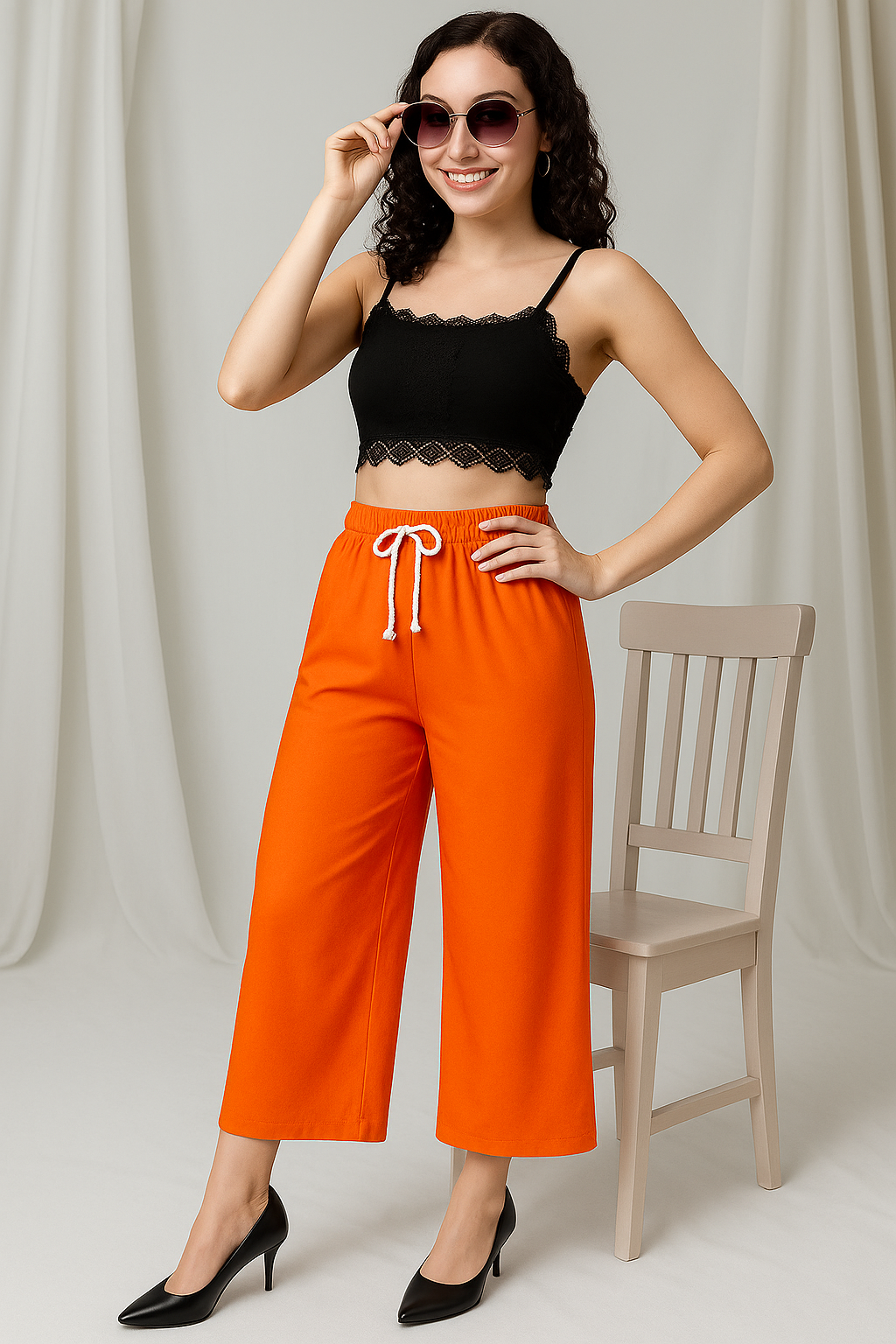This women’s beige plazzo is designed for ultimate comfort and everyday style. Made from a soft rayon-cotton blend, it provides a lightweight and breathable feel, perfect for all-day wear. The elastic waistband ensures a snug yet flexible fit, making it suitable for women of all body types. Its solid beige color gives it a versatile look that can be paired easily with kurtis, tops, or crop blouses. Ideal for casual outings, office wear, or festive occasions, this plazzo is a must-have addition to your wardrobe.