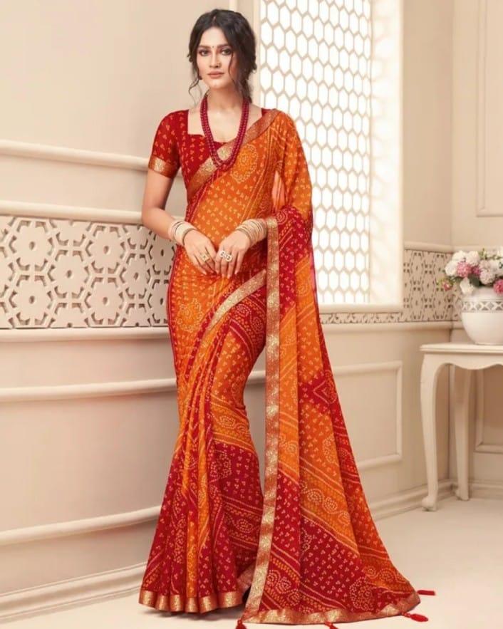 Characterized by their dotted patterns resulting from the tie-dye process, these sarees are vibrant and festive .