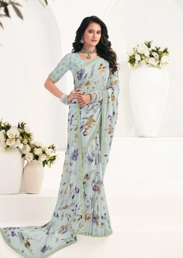 Laxmipati Sarees presents the elegant Style Code N-2483 georgette saree, perfect for casual and daily wear. Designed in a soothing grey shade with a floral print pattern, it exudes grace and sophistication. The saree features a thin printed border that complements its lightweight summer georgette fabric, making it an ideal choice for warm weather.