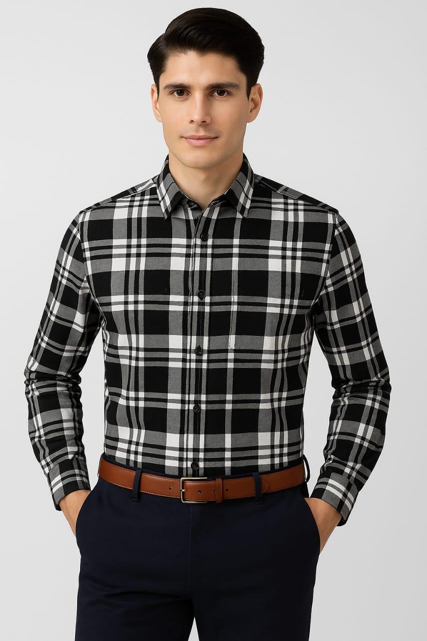 This elegant white checkered formal shirt is crafted from a soft and breathable cotton blend fabric, offering comfort throughout the day. Designed with a classic collar and button-down front, it adds sophistication to any professional outfit. Perfect for office wear, meetings, or formal gatherings, this shirt pairs well with trousers or chinos for a sharp, polished look.