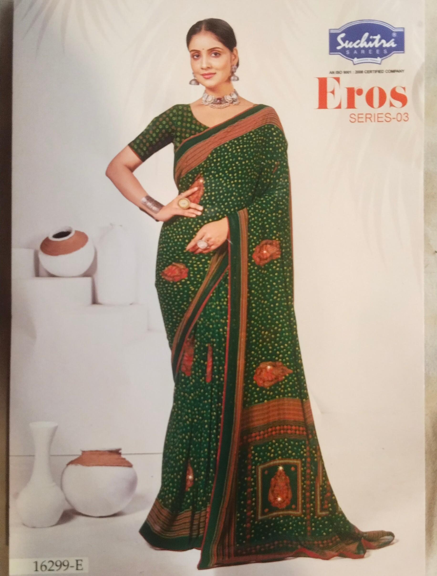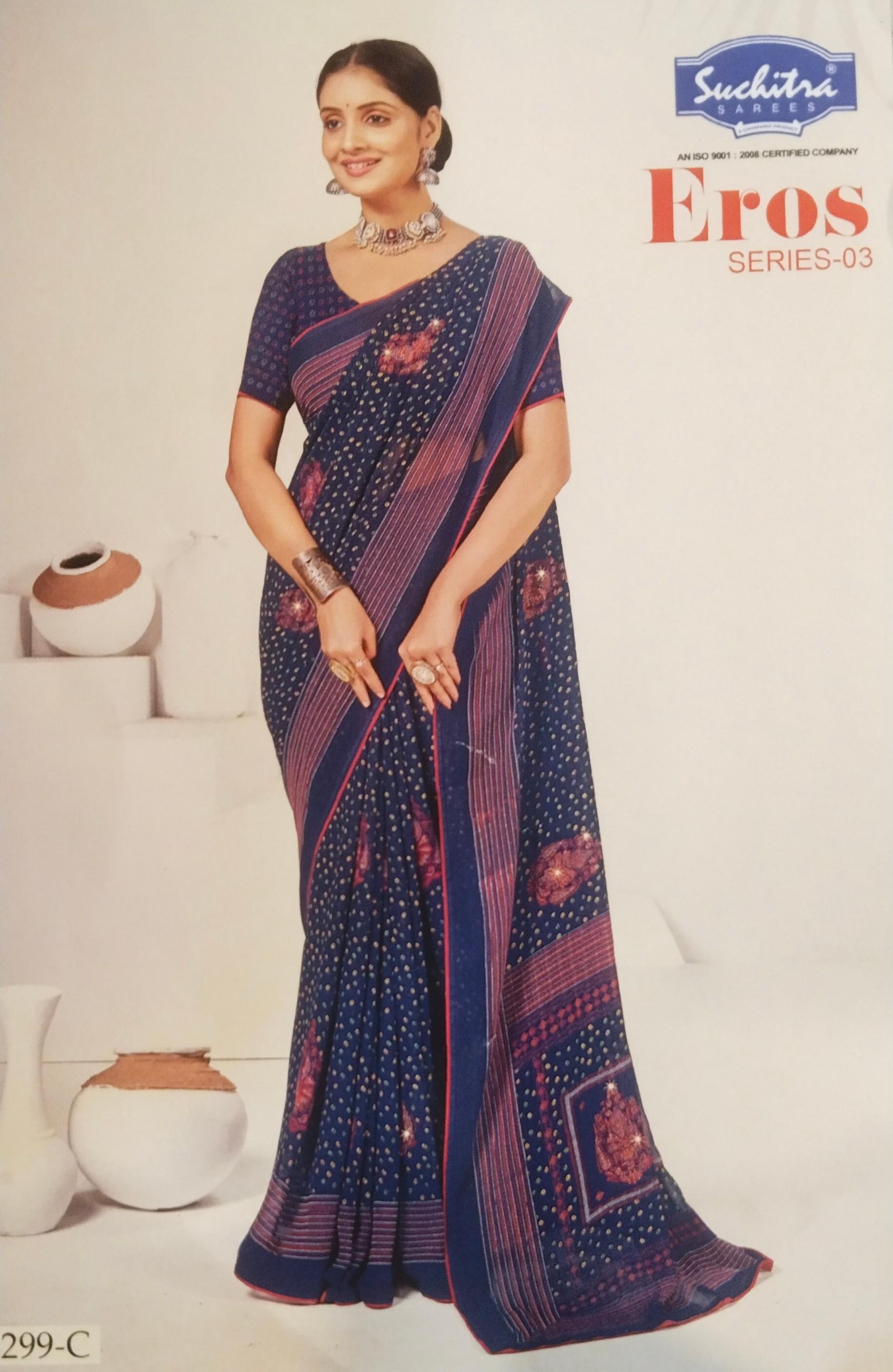 Fabric: Likely Georgette or Soft Synthetic (flowy texture)