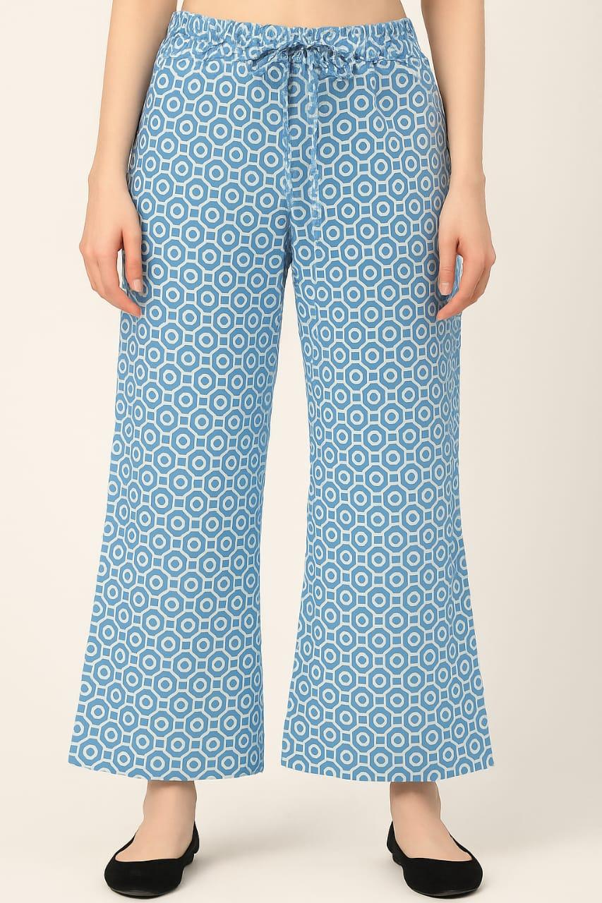 Women’s Cotton Printed Palazzo Combo (Blue & Green)